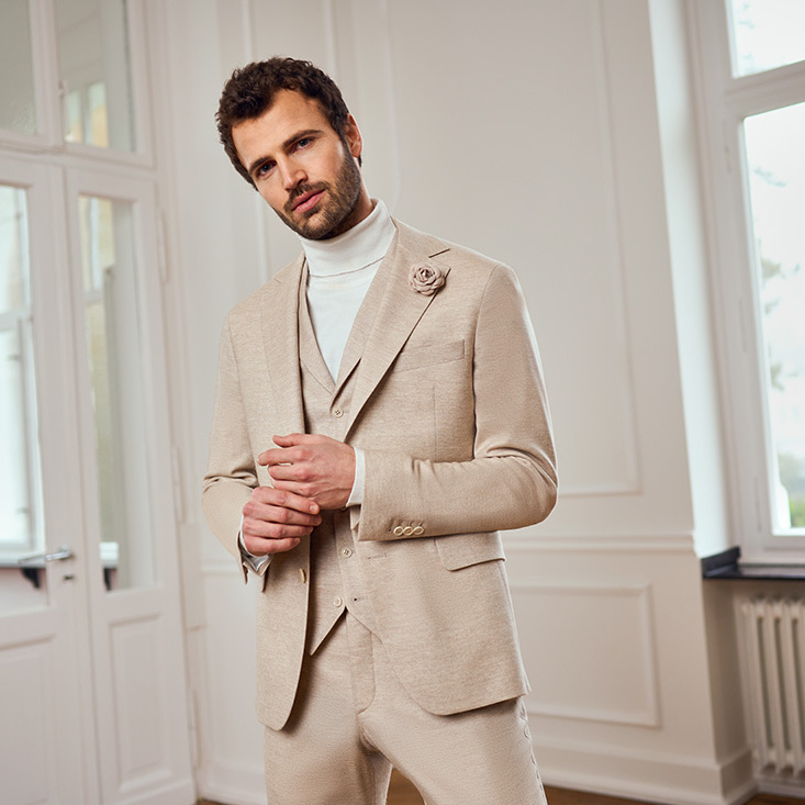 Ihr Hochzeitstag ist eines der wichtigsten Ereignisse Ihres Lebens, und Sie verdienen es, sich an diesem Tag einfach großartig zu fühlen! Ein individuell angefertigter Hochzeitsanzug von KUHN trägt hierzu entscheidend bei – dank unseres tiefgehenden Know-how in puncto Maßkonfektion sitzt er makellos und betont Ihre besten Eigenschaften. Zusätzlich bietet er Ihnen die einzigartige Möglichkeit, Ihre Liebe und Individualität zum Ausdruck zu bringen, indem Sie etwa Stoff und Farbe passend zum Kleid Ihrer Liebsten wählen oder das Datum Ihrer Hochzeit einsticken lassen. Zählen Sie sich zu den anspruchsvollen Herren der Schöpfung, sollten Sie sich nicht mit weniger zufriedengeben. Es ist schließlich Ihre Hochzeit. Keine Sorge: Als erfahrener Maßschneider bzw. Herrenschneider unterstützen wir Sie natürlich, damit Ihr Anzug diesem ganz besonderen Tag gebührend Rechnung trägt. In unserer Filiale in Wien stehen Ihnen unsere Experten mit Rat und Tat zur Seite, um Ihre individuellen Anforderungen zu erfüllen und Ihnen das perfekte Kleidungsstück zu kreieren.