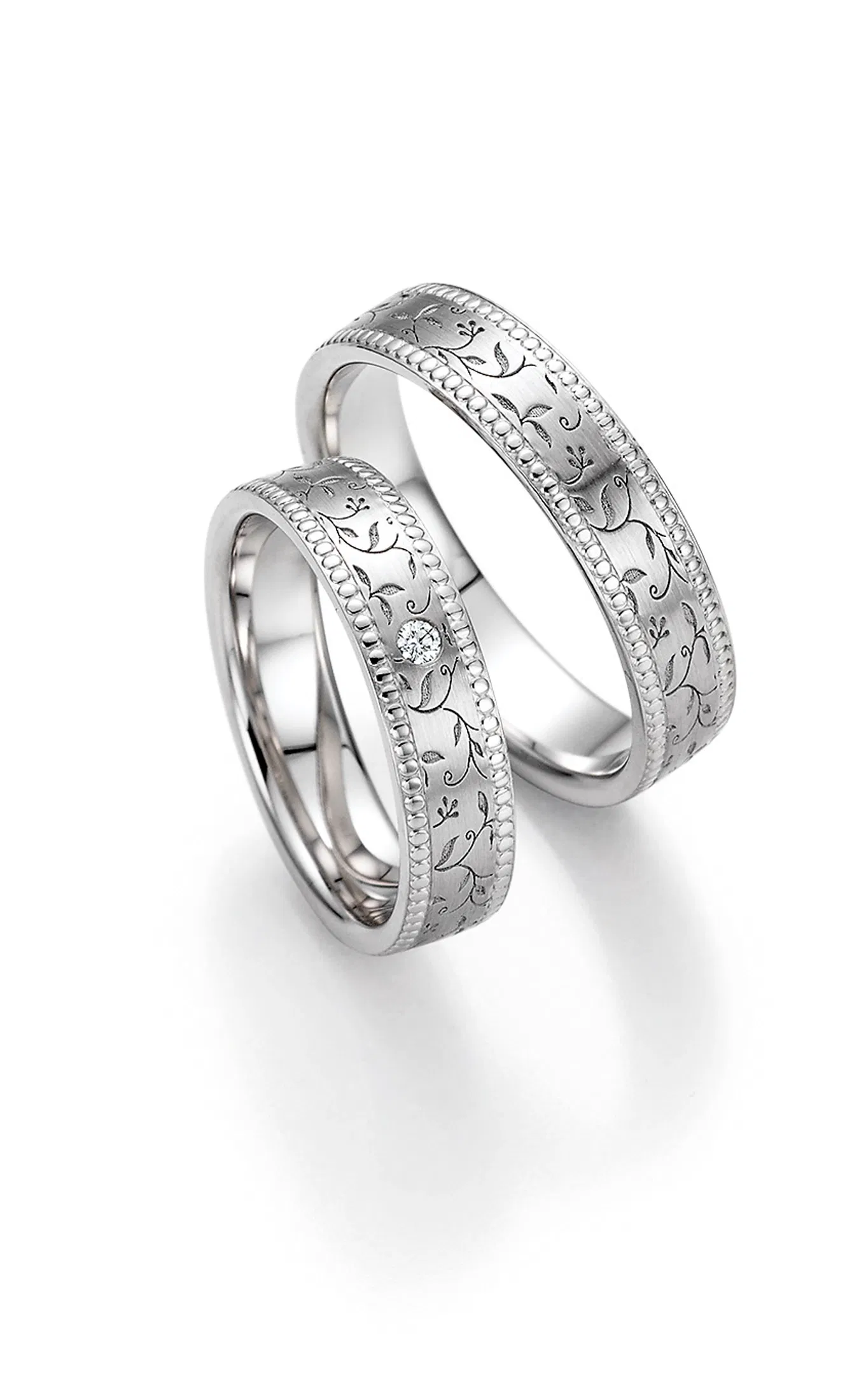 Bild rechts: Seitliche Perlierung akzentuiert die beiden Eheringe von MEISTER.
