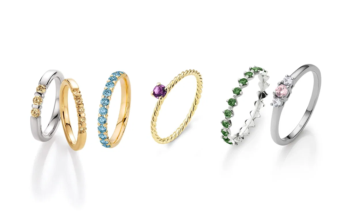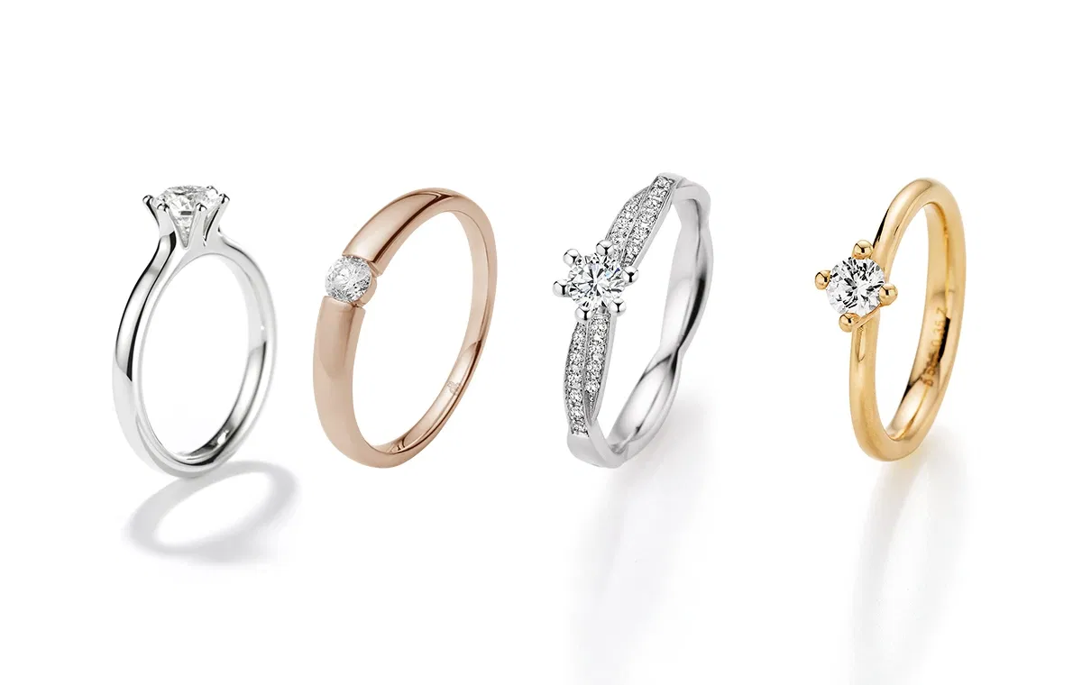 Wir zeigen euch vier aktuelle Trends rund um euren Verlobungs- und Trauring. Vom zeitlosen Statementstein im Solitär-Ring über farbige Diamanten bis hin zu funkelnden Steinen für den Bräutigam.