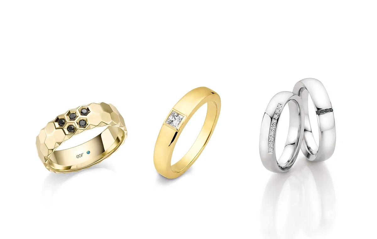 Einige Hochzeitspaare entscheiden sich für Partnerringe, die durch den Einsatz von Diamanten subtil aufeinander abgestimmt sind. So entsteht eine harmonische Verbindung, die gleichzeitig die Individualität beider Partner wahrt. Für den Bräutigam kann ein Diamant im Ehering zudem ein starkes Statement sein: zeitlos, elegant und gleichzeitig außergewöhnlich. Besonders beliebt sind dabei schwarze Diamanten. Sie verleihen dem klassischen Ehering eine extravagante Note, ohne dabei zu aufdringlich zu wirken.