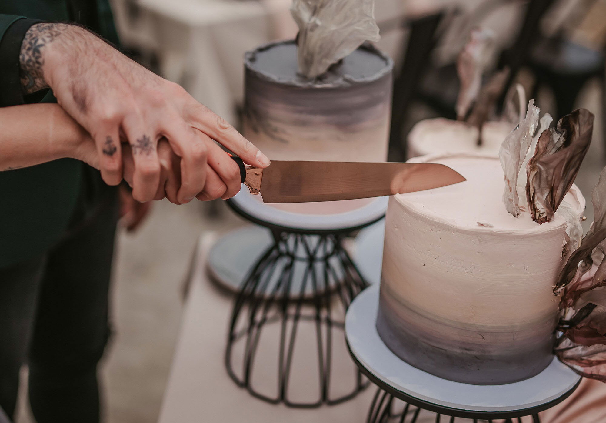 Gemeinsam die Hochzeitstorte anzuschneiden symbolisiert, dass das Paar den neuen Lebensabschnitt gemeinsam beschreitet. Oft ist es eine kleine Show, das erste Stück anzuschneiden und steht für den Zusammenhalt der frisch Vermählten.
