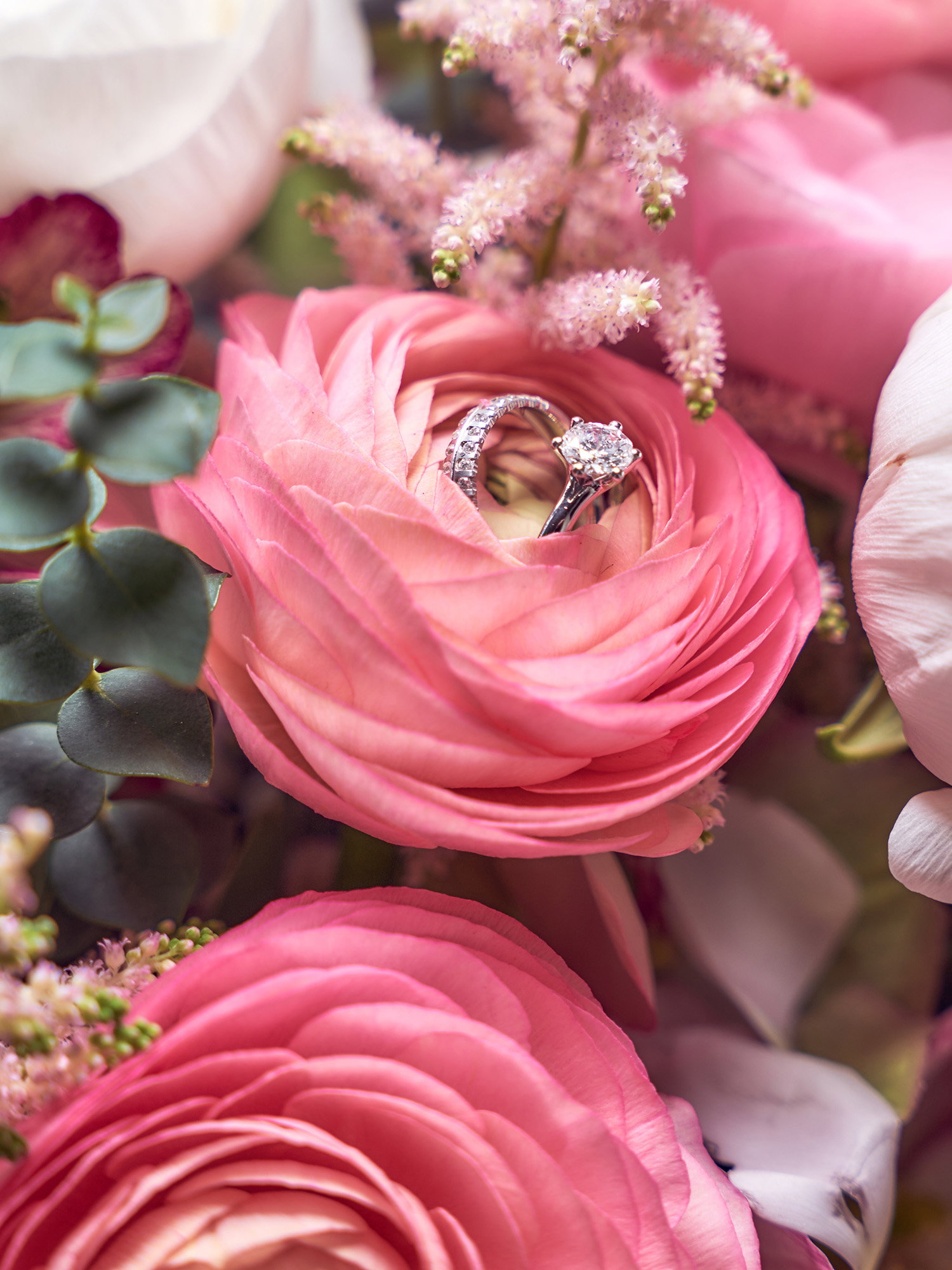 Was könnte romantischer und symbolträchtiger sein, als den Bund fürs Leben zu initiieren? Die Eheringe werden auf einer zarten Ranunkelblüte inszeniert – ein Zeichen dafür, dass ihre Liebe in Schönheit erblüht und gedeiht.