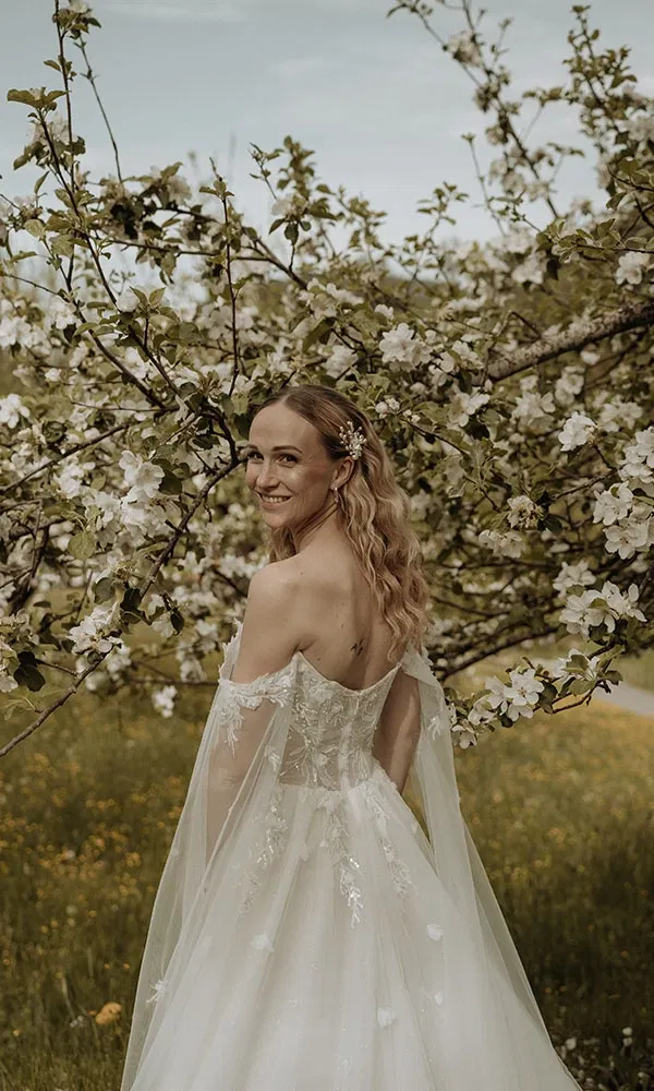 Clara-Luise fand ihr Traumkleid im kleinen, charmanten Brautmodengeschäft Märchenweiss in Schongau. Als sie das Kleid anprobierte, war sofort klar: „Das ist es“, flüsterte sie der Verkäuferin zu.