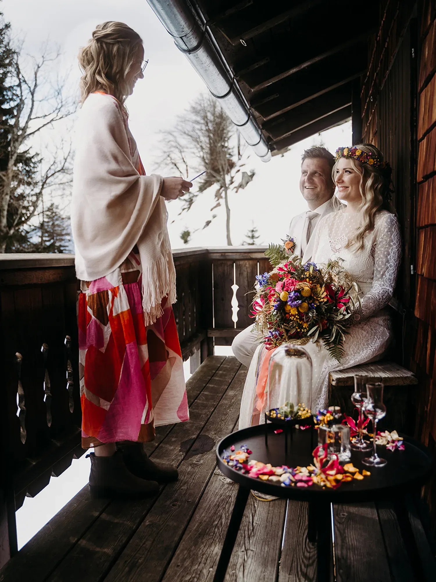 Lasst euch von funkelnden Lichterketten, Kerzenschein und schillernden Dekoelementen inspirieren, um eine Atmosphäre zu schaffen, in der sich alle Hochzeitsgäste geborgen fühlen. Falls einige Hochzeitsrituale im Freien geplant sind, sorgt mit wärmenden Decken und atmosphärischen Feuerstellen oder Fackeln für Komfort.