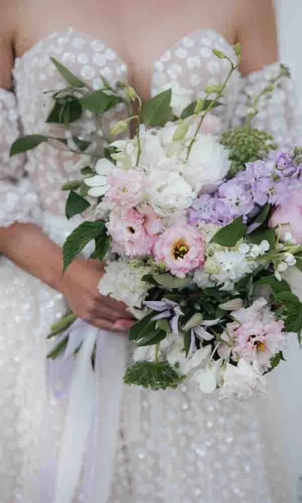 Warum nicht den Strauß mit Bändern aus Satin oder Spitze aufpeppen? Wer möchte, kann auch Familienschmuck wie eine Brosche anbringen.