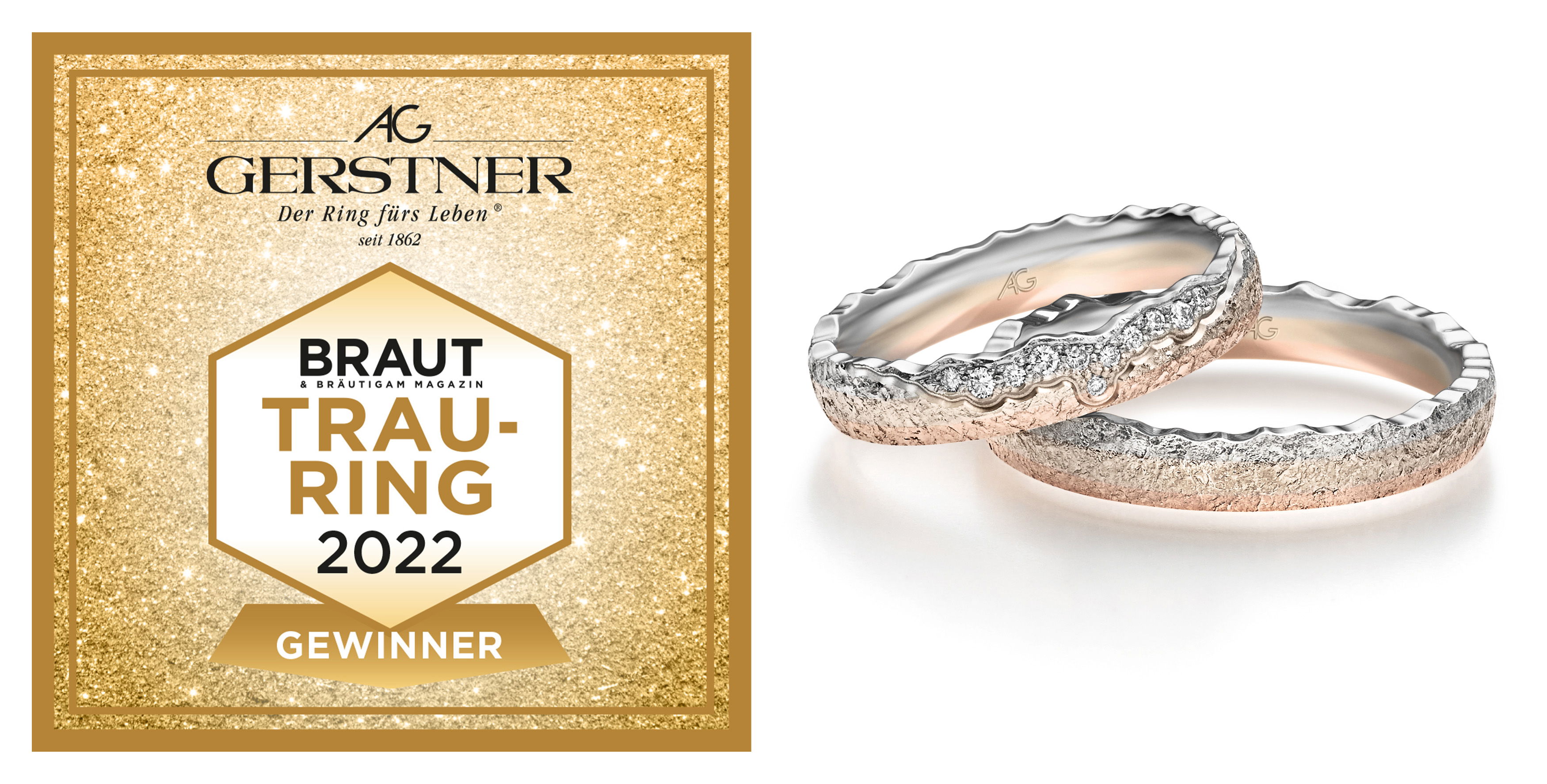 Inspiriert von sanftem Mondlicht und dem glitzernden Sternenhimmel ist dieses Ring-Duo aus der „Mondlicht“-Kollektion von Gerstner. Strahlend weiß säumen elf Brillanten die organisch gestaltete Ringkante des Damenrings und verbinden sich mit der fein strukturierten Oberfläche. Unterschiedlich nuancierte und aufwendig legierte Goldtöne verbinden sich zu einem kontrastreichen und gleichsam harmonischen Farbverlauf. Dieses Ring-Set ist besonders für Romantiker ein echter Blickfang!