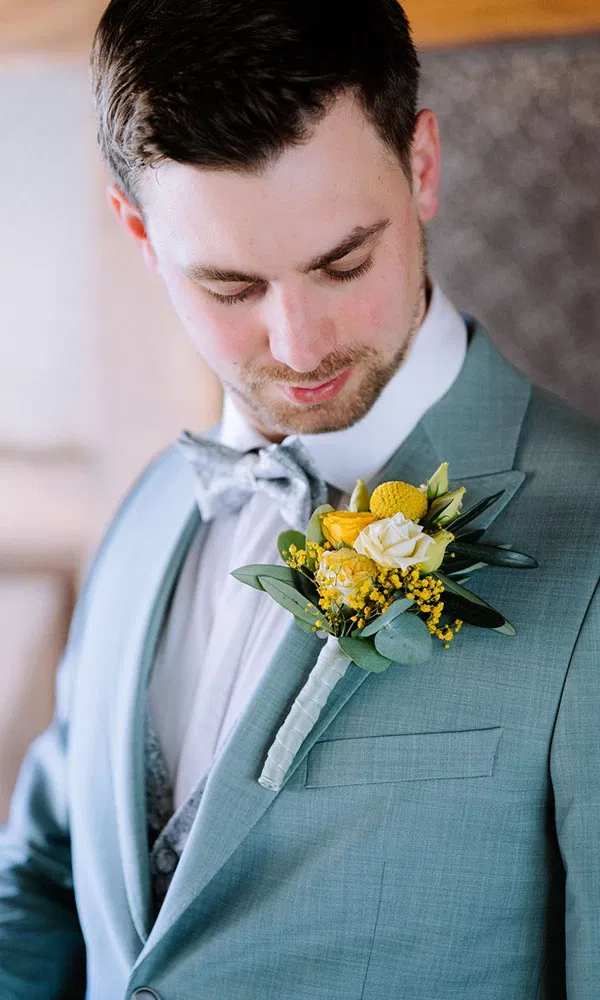 Anzug-Corsage – Der Blumenschmuck für den Bräutigam