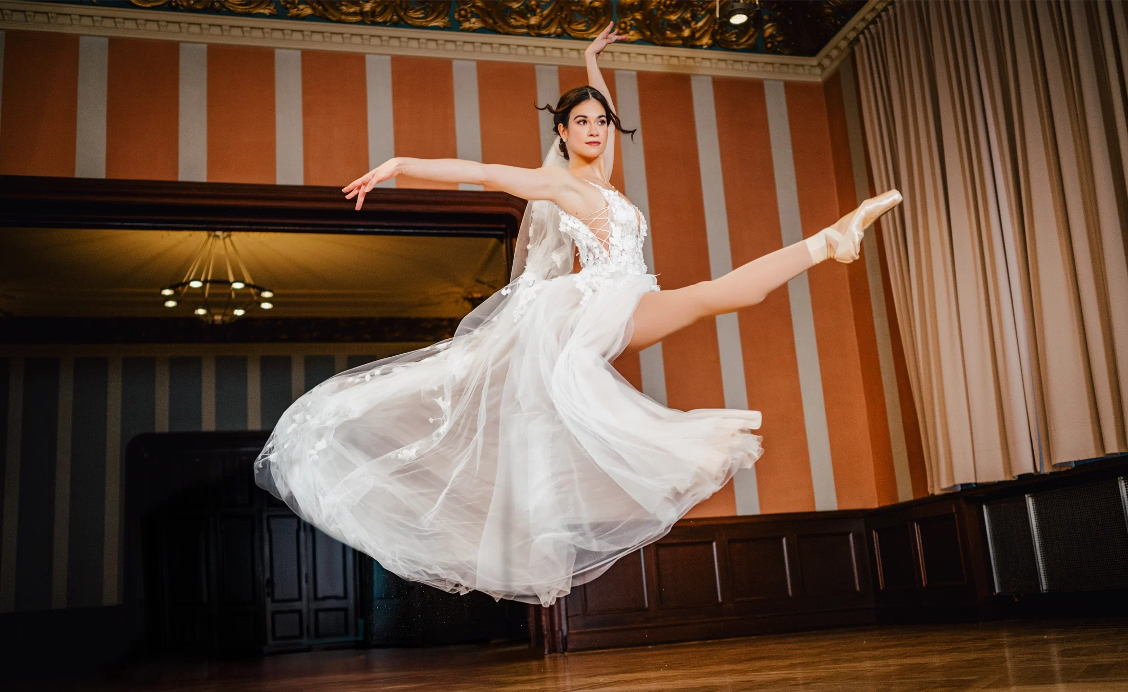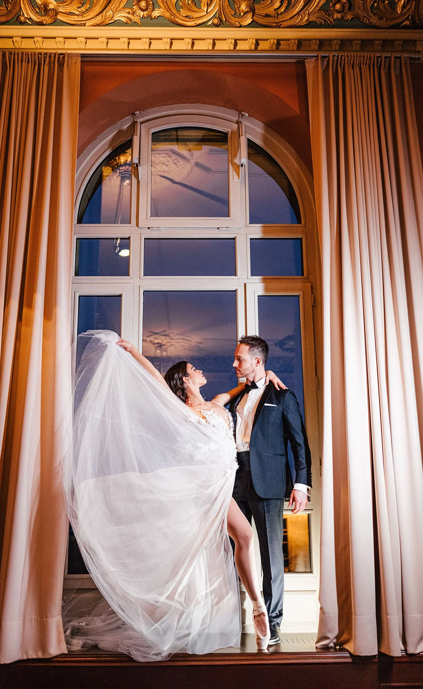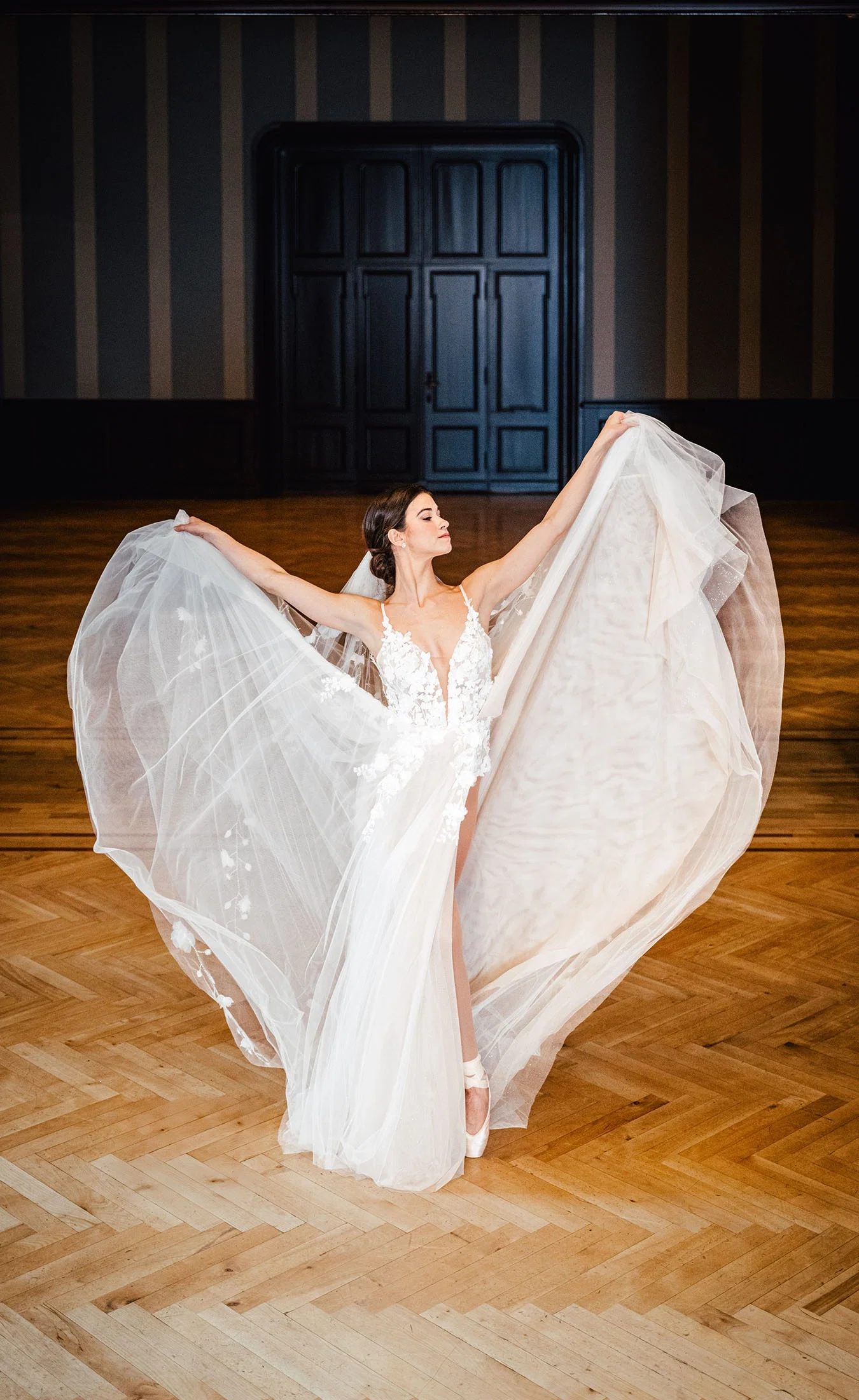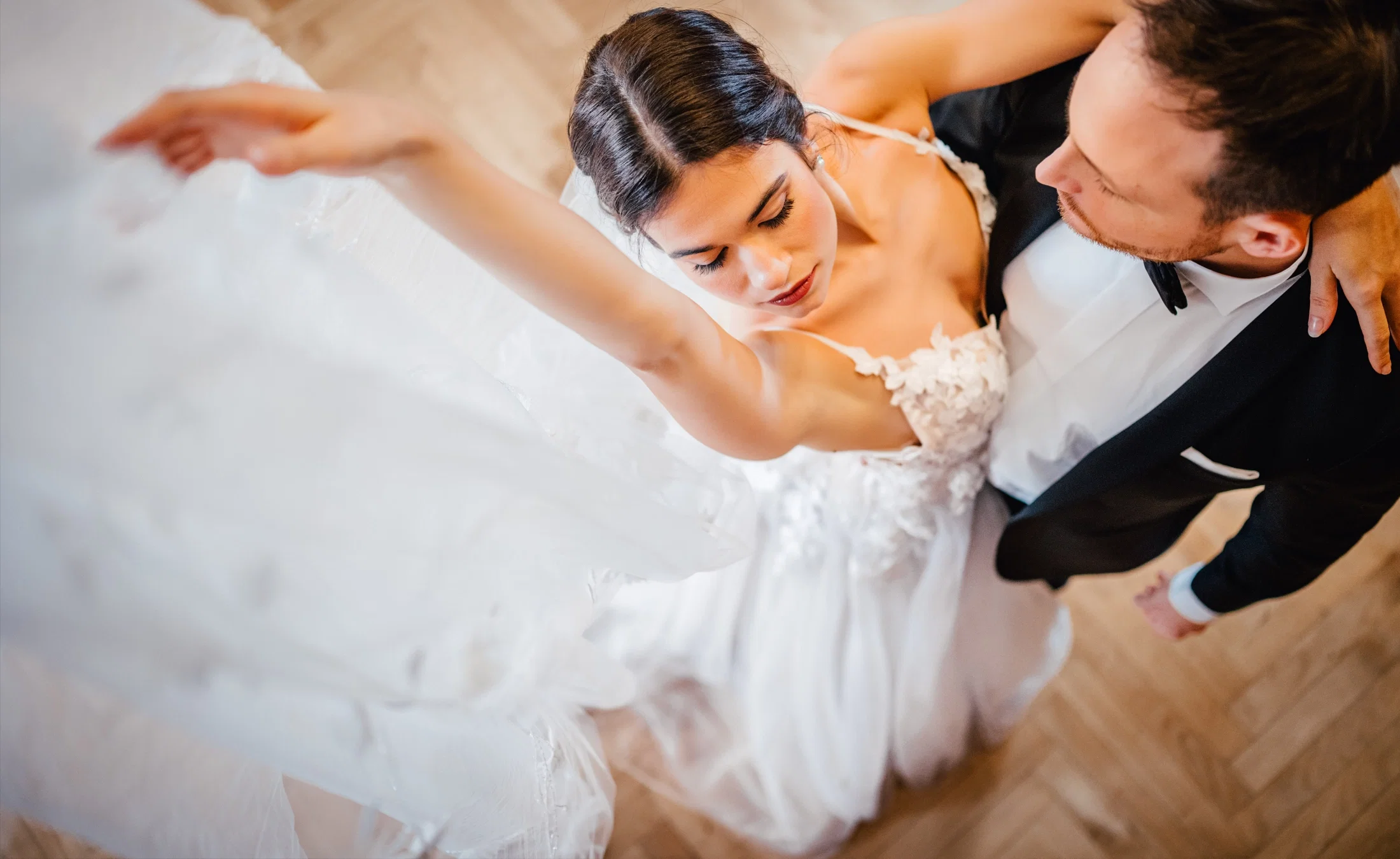 Ballett ist eure große Leidenschaft? Mit den verschiedenen Figuren lassen sich eindrucksvolle Bilder erschaffen. Ob elegante Hebefiguren, Pirouetten oder eine Pose auf Spitze – die fließenden Bewegungen wirken im Hochzeitslook besonders ästhetisch und verleihen den Fotos eine außergewöhnliche Leichtigkeit.