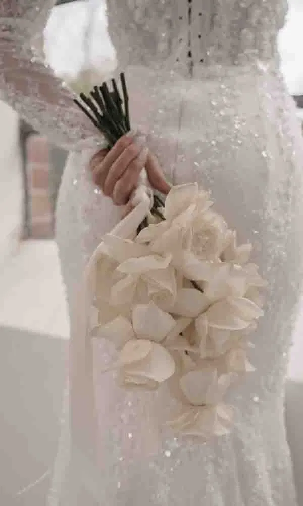 In diesem Konzept spielen Materialien eine zentrale Rolle. Transparente Stühle, hohe Blumenarrangements auf Glasständern und eine minimalistische Tischgestaltung schaffen eine leichte, fast schwebende Atmosphäre. Die Floristik besteht meist aus einer Mischung klassischer Rosen, Pfingstrosen und Orchideen, modern interpretiert in asymmetrischen Formen. Das Ergebnis ist ein großzügiger, zeitgemäßer Look. Auch in der Papeterie spiegelt sich diese Balance wider: klare Typografie trifft auf zarte, romantische Illustrationen.
