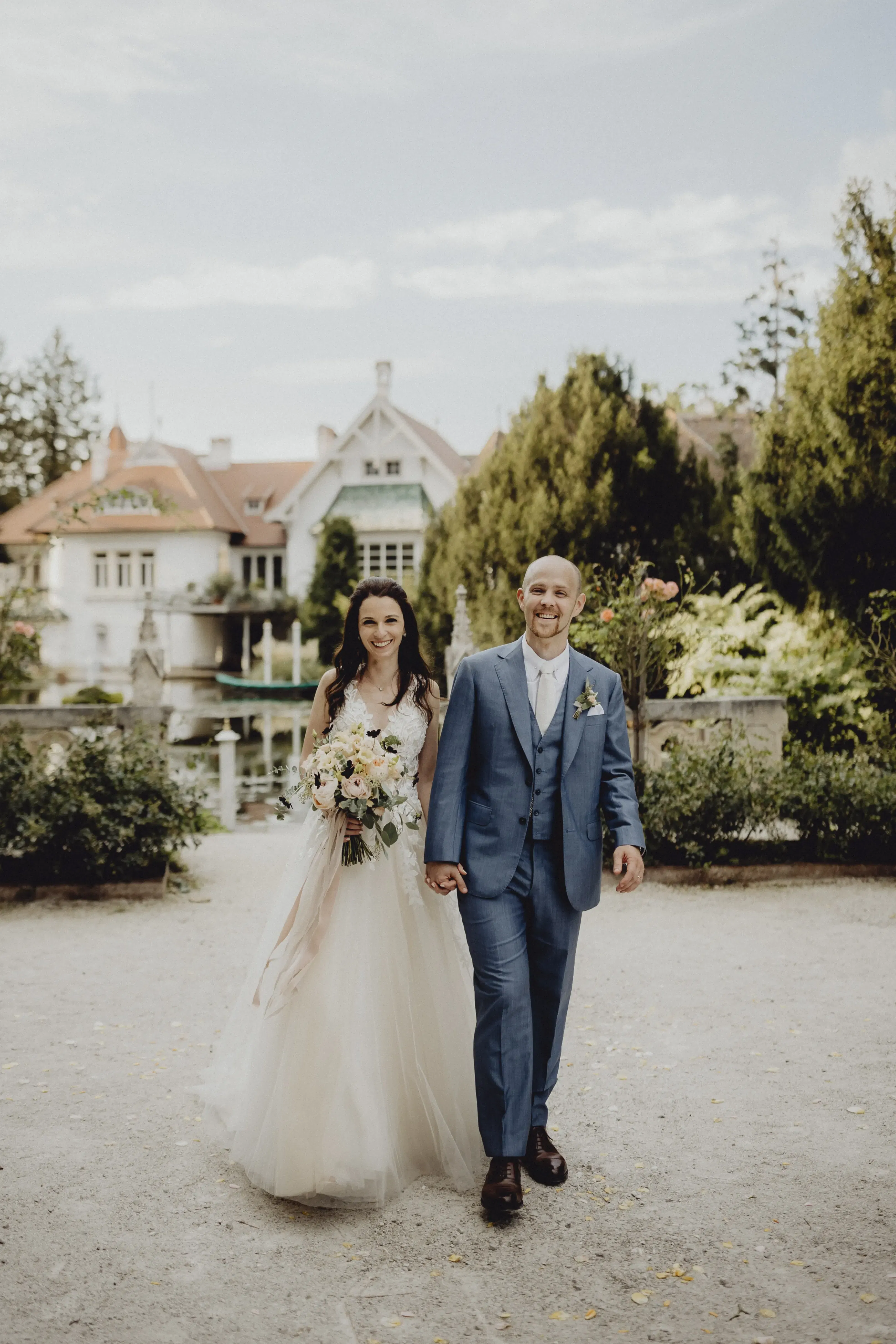 Luisa (34) und Martin (34) feierten ihre katholische Trauung im Rosengarten des niederösterreichischen Schlosses Schönau. Bei der Hochzeitstafel im mediterranen Innenhof kam Urlaubsstimmung auf. Das Brautpaar und die Gäste genossen eine entspannte Hochzeit mit vielen innigen Momenten.