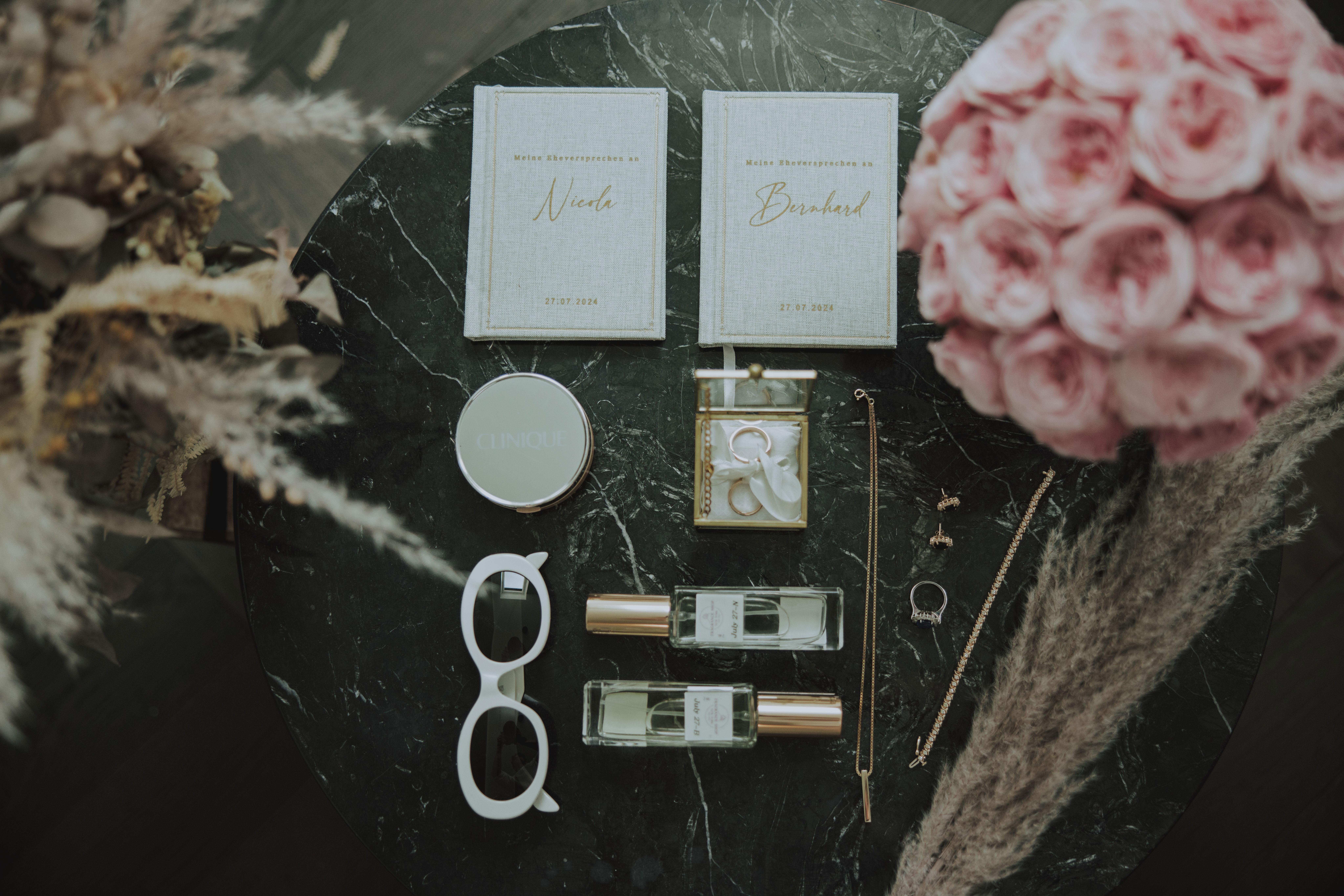 Nach dem romantischen Antrag im Oktober 2023 ging es statt an die Hochzeitsplanung erst einmal in den Urlaub. „Wir dachten, es wäre zwar nett, wenn wir 2024 noch heiraten würden, aber wir wollten es nicht erzwingen. Das Einzige, was uns gleich klar war: Die Hochzeit sollte in Österreich stattfinden.“ Nach einigen Internetrecherchen hinsichtlich Locations kam das Paar auch auf das wunderschöne Schloss Traunsee. Ein Besichtigungstermin im Dezember mit Wedding-Plannerin Gabi Socher, die für ihre außergewöhnlichen Hochzeiten im Salzkammergut bekannt ist, führte schließlich dazu, dass Gabi dem Paar nicht nur das Schloss zeigte, sondern wenig später für die gesamte Planung engagiert wurde. „Uns haben Gabis Freundlichkeit, Transparenz und Kompetenz vollends überzeugt.“ Als klar war, dass es noch freie Termine im Sommer gab, entschied sich das Paar dazu, am Traunsee zu heiraten. „Die Kombi aus See, Schloss und Berg hat uns sofort geflasht!“, so die begeisterte Braut.
