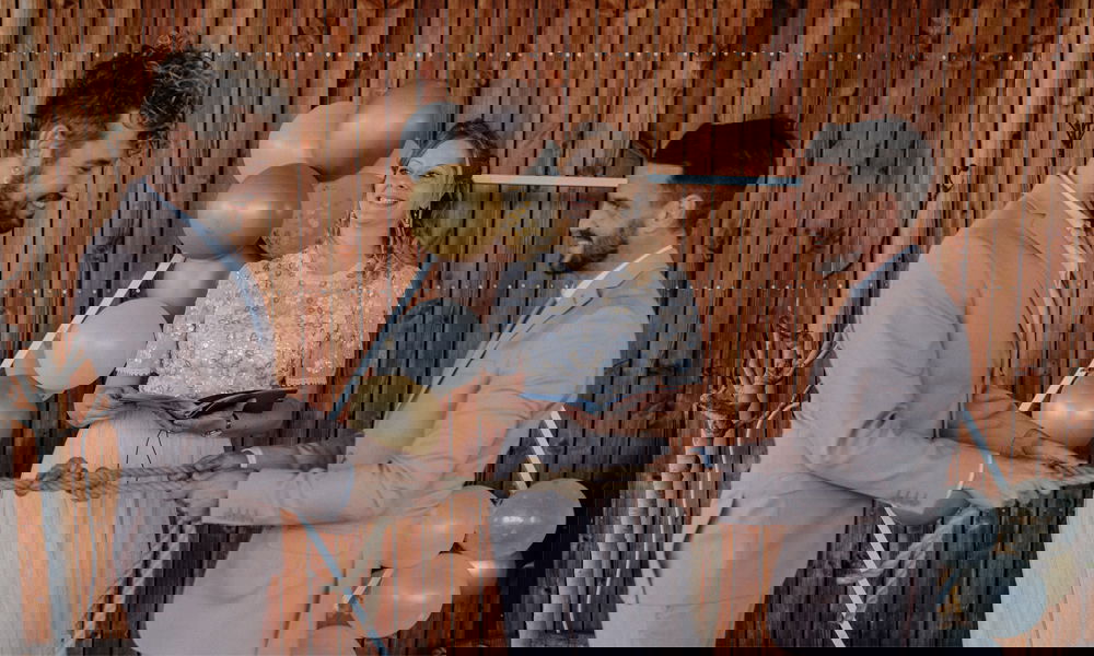 Die Gäste bilden in einem besonders wichtigen Moment der Hochzeitszeremonie einen Kreis um das Brautpaar, um zu verdeutlichen, dass es Teil einer Gemeinschaft ist und als Ehepaar von Familie und Freunden beschützt wird.