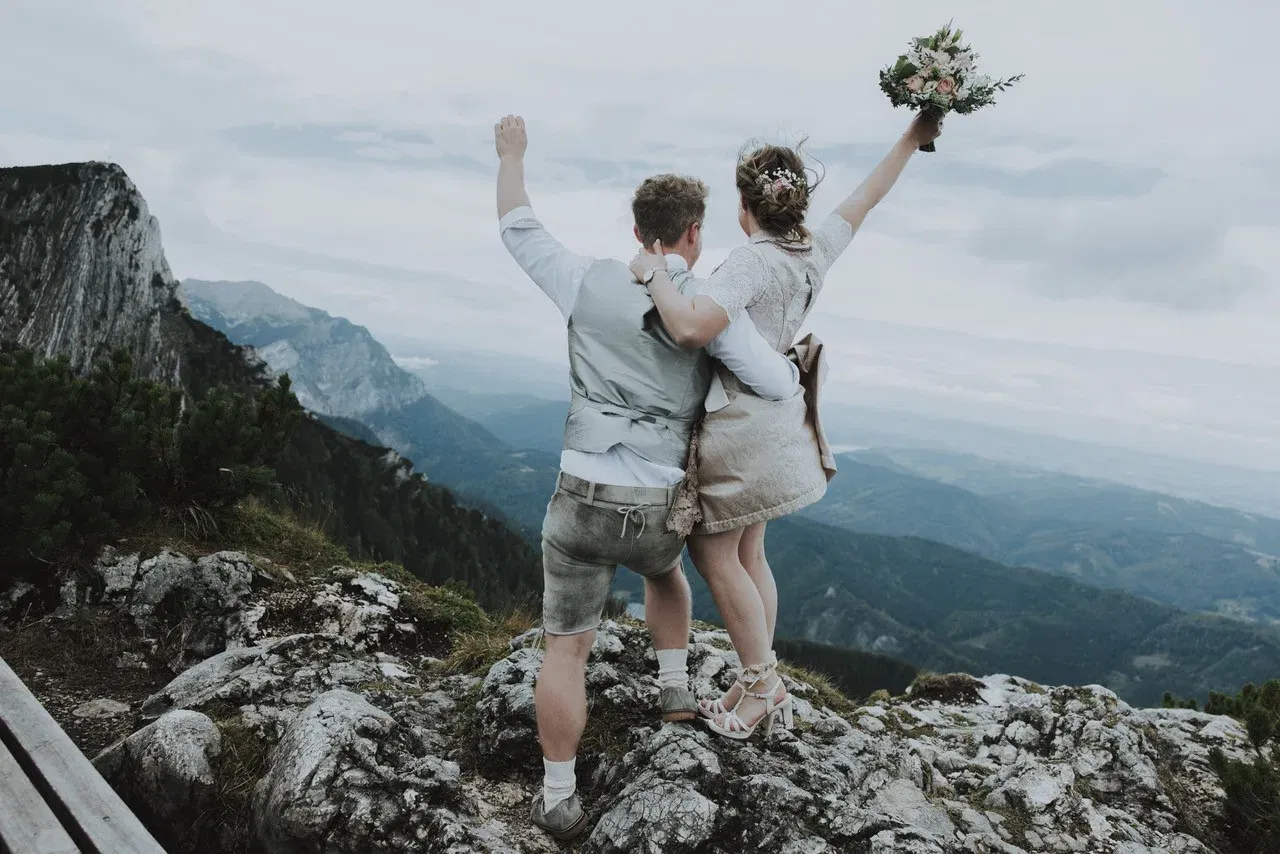 Gegen Abend fuhren die zwei Frischverheirateten wieder zurück ins Tal, wo sie zu zweit noch eine feine Zeit am Traunsee genossen. Gabi Socher denkt gerne an diesen besonderen Tag in den Bergen zurück: “Jessy und Mathias haben mir noch viele Tage später geschrieben, wie sehr sie den Gedanken an ihren Hochzeitstag lieben.”