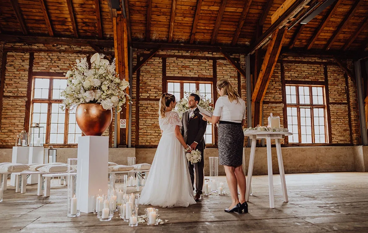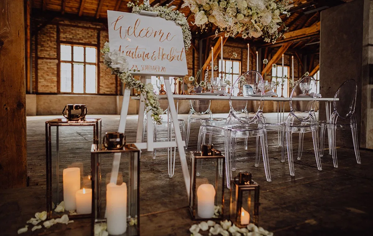 Die historische Industriehalle zählt zu den außergewöhnlichsten Hochzeitslocations in Oberösterreich. Sichtbare Holzbalken, charakterstarke Ziegelwände und großzügige Fensterfronten prägen das Erscheinungsbild und verleihen dem Raum eine warme, authentische Atmosphäre. Gleichzeitig sorgt die beeindruckende Raumhöhe von bis zu 14 Metern für ein spektakuläres Raumgefühl, das modernen Hochzeitskonzepten viel gestalterische Freiheit lässt.