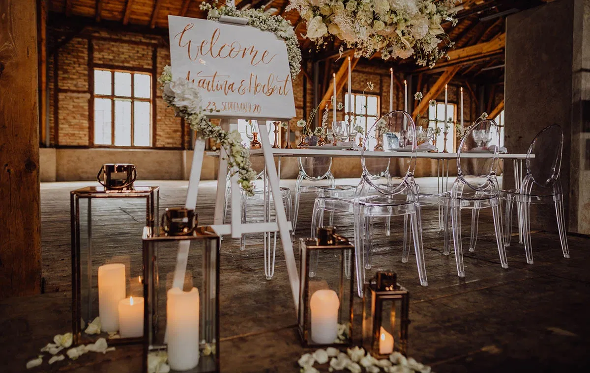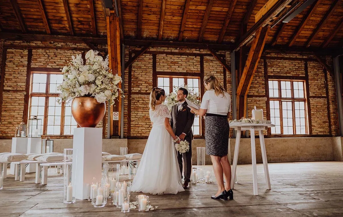 Die historische Industriehalle zählt zu den außergewöhnlichsten Hochzeitslocations in Oberösterreich. Sichtbare Holzbalken, charakterstarke Ziegelwände und großzügige Fensterfronten prägen das Erscheinungsbild und verleihen dem Raum eine warme, authentische Atmosphäre. Gleichzeitig sorgt die beeindruckende Raumhöhe von bis zu 14 Metern für ein spektakuläres Raumgefühl, das modernen Hochzeitskonzepten viel gestalterische Freiheit lässt.