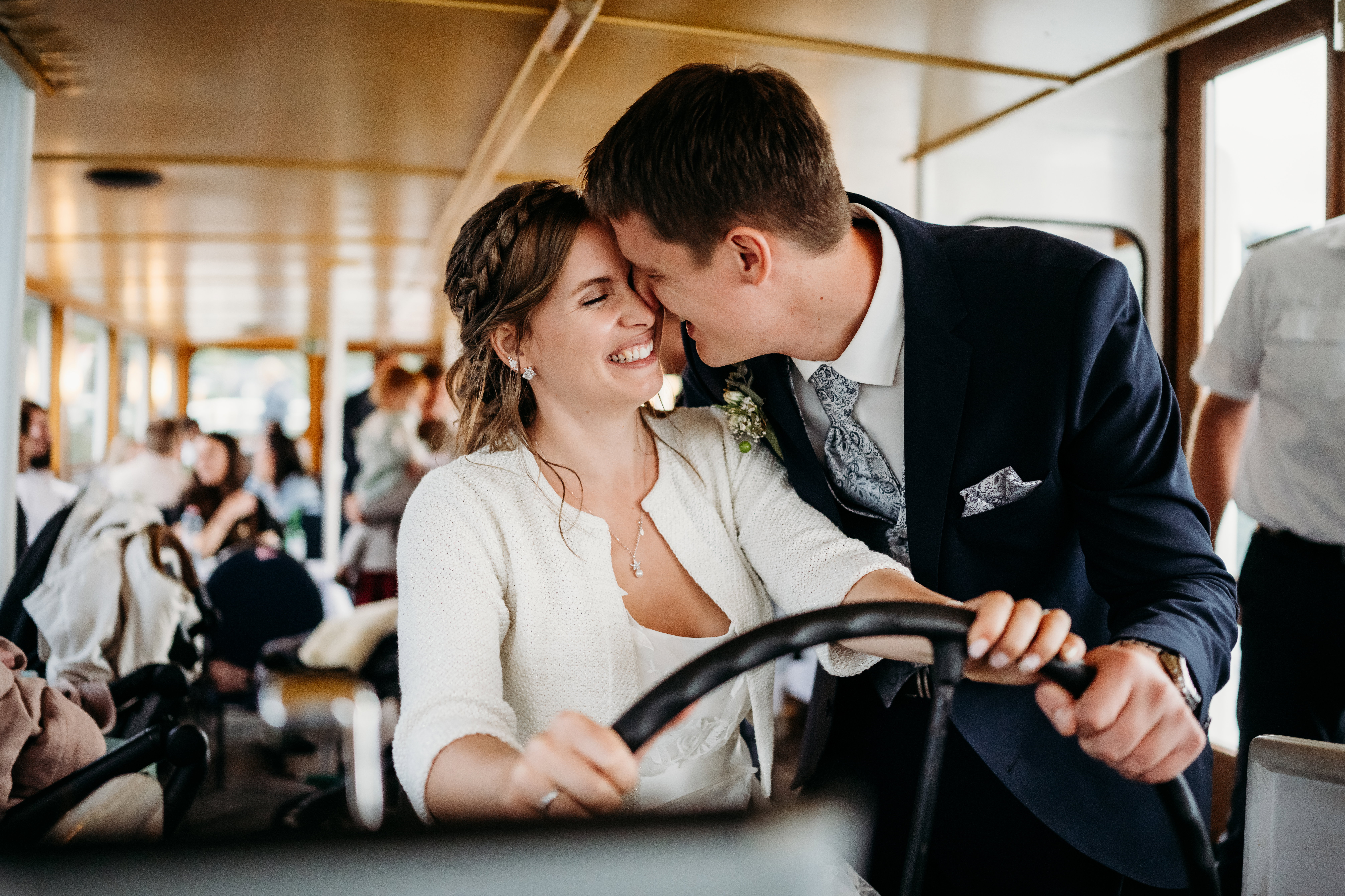 Felix, der kleine Sohn, war 1,5 Jahre alt und die stolzen Eltern waren sich sich sicher, dass er bis zur Hochzeit die Ringe meisterhaft zu ihnen tragen konnte. Doch der Kleine war noch nicht sicher genug auf den Beinen und so musste der Trauzeuge übernehmen.