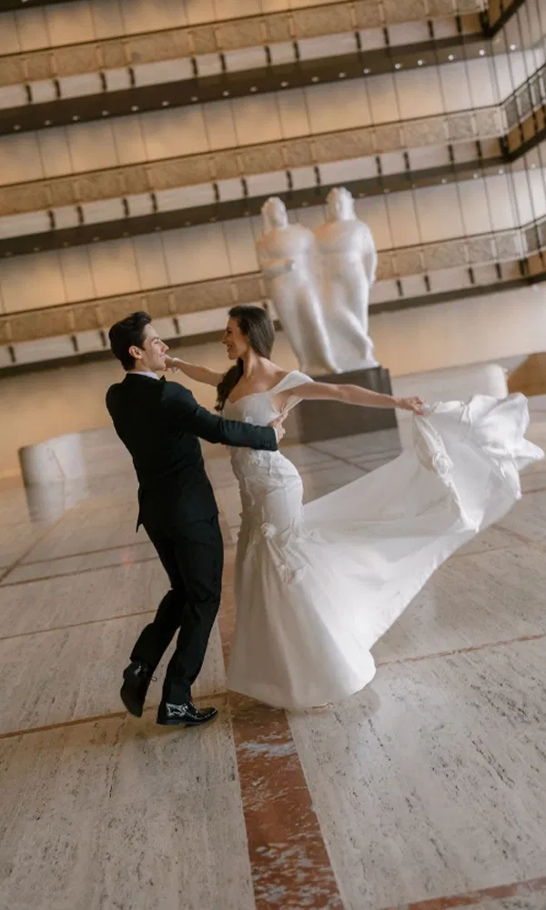 Von der Bühne ins wahre Leben: Die Principal Dancers Tiler Peck und Roman Mejia lernten sich bei einer Kampagne von Justin Alexander ganz neu kennen – und feierten nun ihre Traumhochzeit in New York City. Eine Liebesgeschichte, die in Tüll, Tanz und Emotionen getaucht ist.