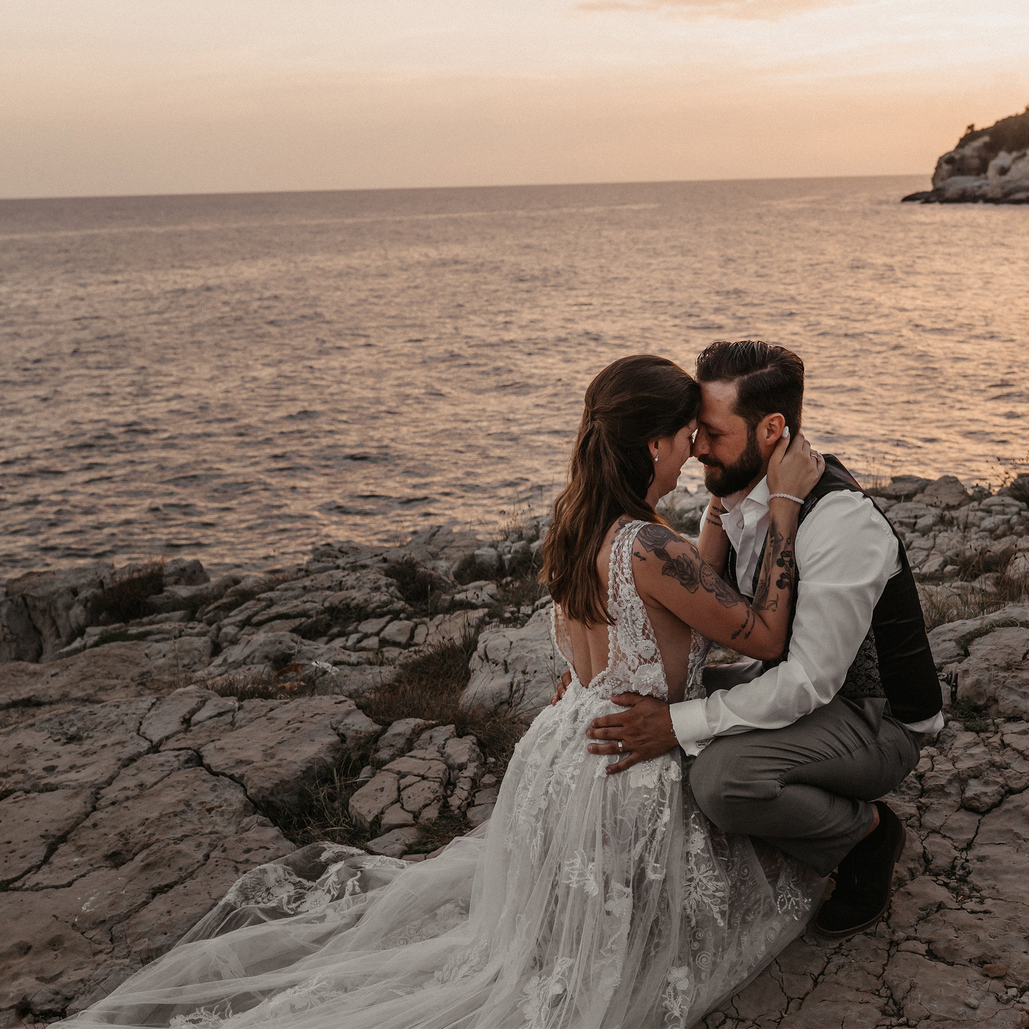 Mit herabregnendem Glitter, Konfetti oder mit Blütenblättern entstehen besonders dynamische Bilder beim Paar-Shooting. Am besten mit dem Fotografen besprechen und für den Hochzeitstag bereitlegen. Wurde vielleicht auch schon ein After-Wedding-Shooting in Erwägung gezogen?