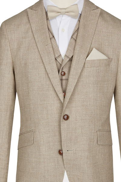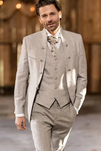 - Beiger Hochzeitsanzug aus Leinenstoff.