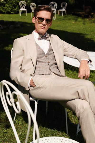 Bräutigam-Looks in hellen Farben liegen im Trend. Besonders Beige-Töne eignen sich hervorragend für lässige Boho-Styles.