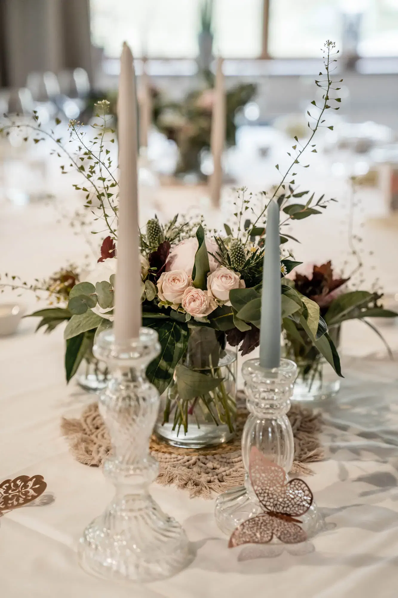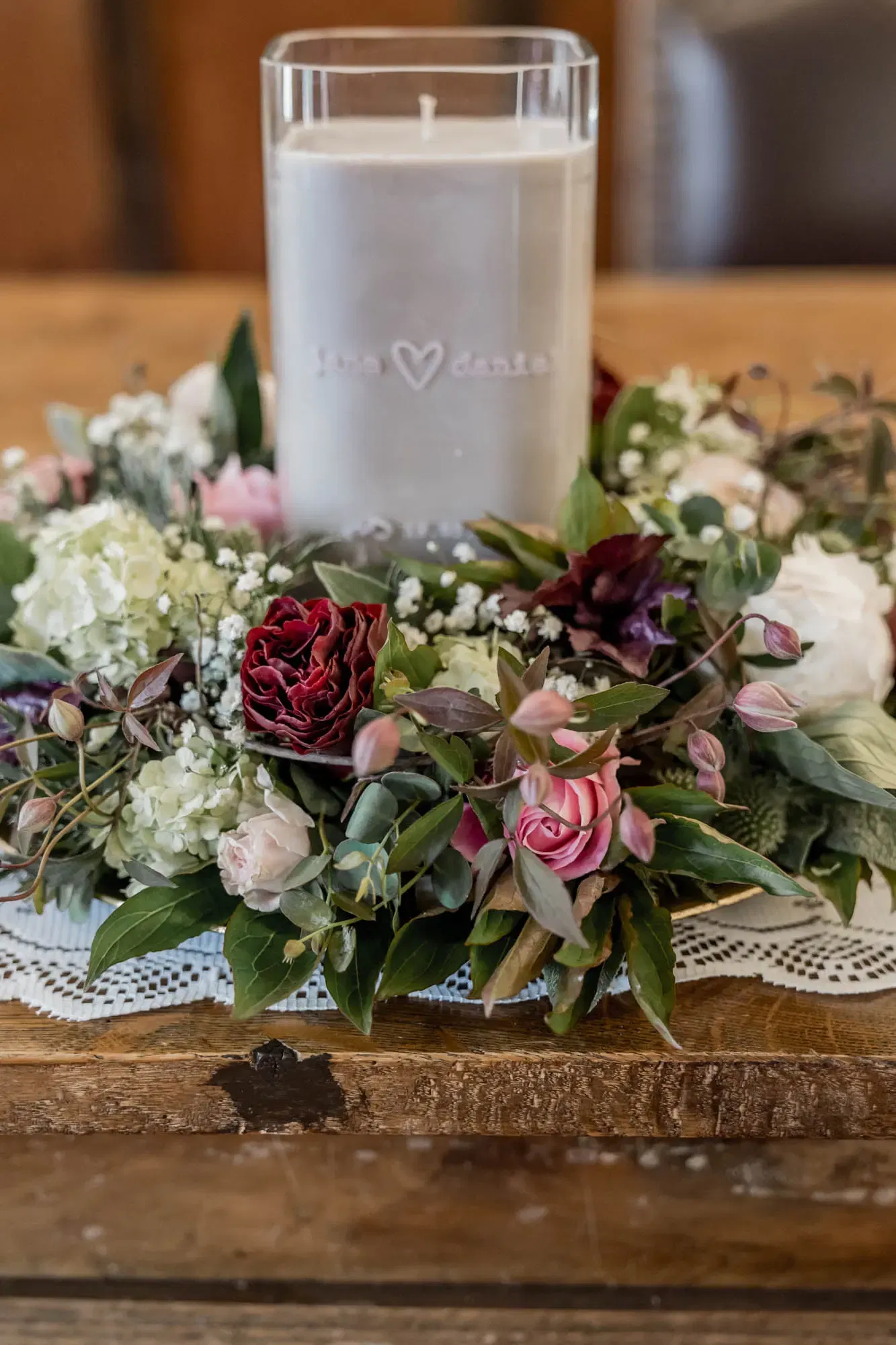 Die Dekoration aus Rosen, Pfingstrosen, Disteln, Kamille und zahlreichen weiteren Blumen und Blättern wurde von Janes Schwester übernommen. Die Serviettenringe und Tischsets wurden von Daniels Schwester geknüpft. „Deko-Schmetterlinge waren auch am Tisch platziert. Das ist in unserer Familie ein Symbol für die Menschen, die leider nicht mehr unter uns sein können“, so Jane. In kleiner Familienrunde, mit insgesamt 13 Gästen, genoss das Paar eine unvergessliche Trauung in Dürnstein, gefolgt von einem gemütlichen Nachmittag und Abend im Weinberghof Ilkerl-Luf. „Genau so haben wir es uns gewünscht.“