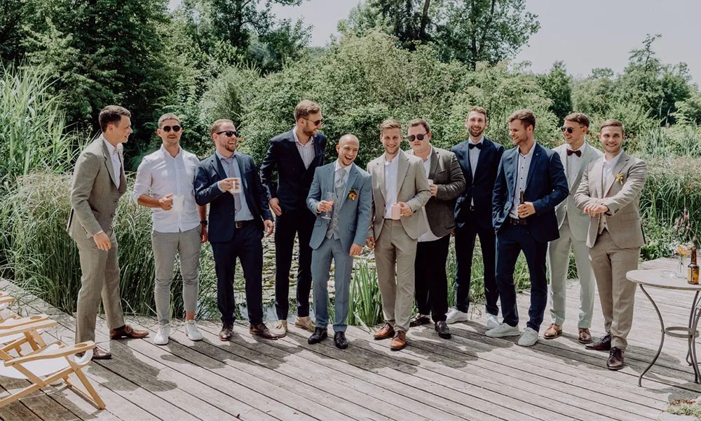 Für Bene war es der Moment, als sich die Hitze des 32-Grad-Tages endlich legte und sich die Stimmung draußen in der Open-Air-Weinstube entspannte. „Da war ein kleiner Teich, ein Teichhaus, und als es am Abend abgekühlt hat, ist die ganze Anspannung abgefallen. Beim Essen und davor in der Kirche ist man ja noch voller Energie und Nervosität – aber da konnte ich einfach genießen. Das war für mich der coolste Moment.“