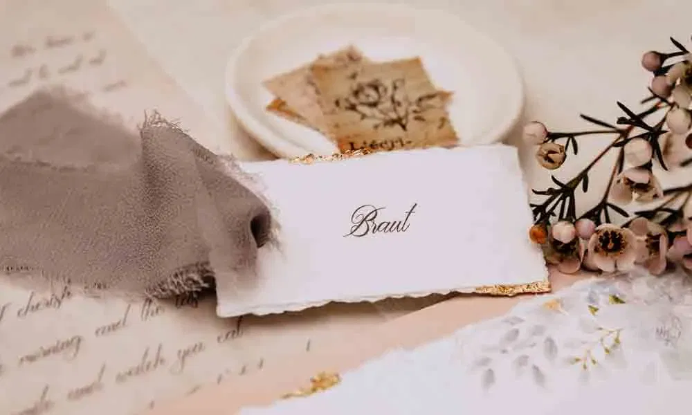 Ein weiterer berührender Moment eurer Bridgerton-Hochzeit ist das Eheversprechen – am besten in Form eines romantischen Liebesbriefs. Zwischen zarten Stoffschuhen, duftenden Blüten und handgeschriebener Papeterie liegt euer persönlicher Brief, der mit ehrlichen Worten zu Tränen rührt. Formuliert euer Versprechen mit Herz, Gefühl und eurer eigenen Handschrift – vielleicht auf feinem Büttenpapier, das an alte Zeiten erinnert. So entsteht ein Erinnerungsstück, das ihr für immer aufbewahren möchtet.