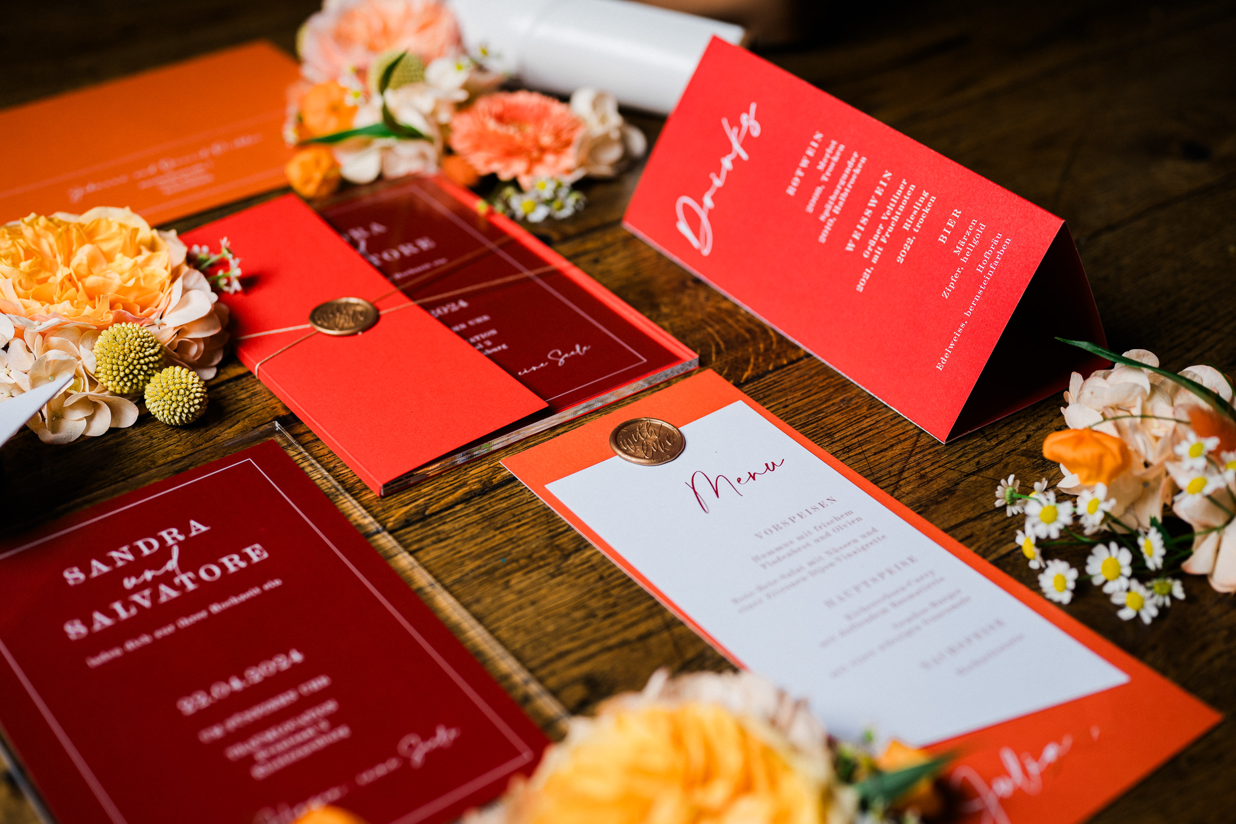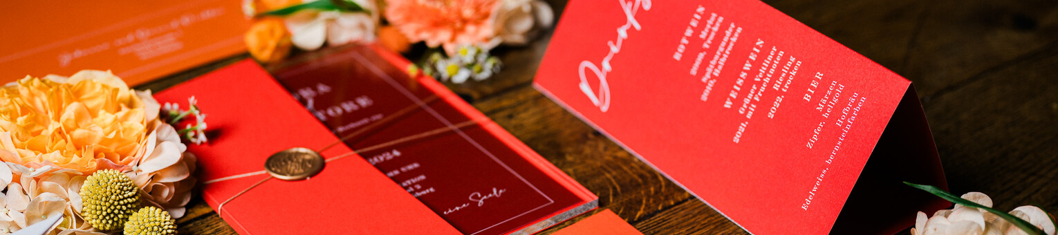 …ist unsere Basis!Jedes Projekt ist einzigartig, keines gleicht einem anderen. Falls Ihr die Grafik druckfertig beistellen oder einzelne Arbeitsschritte übernehmen wollt, ist das kein Problem, alles ist möglich! Durch das Binden der Bänder, der Anfertigung von Siegels oder das Einkuvertieren Eurer Karten verleiht Ihr Eurer Papeterie selbst den letzten Schliff.